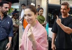 અક્ષય કુમાર મુંબઈમાં પોતાના મતદૃાન મથક પર પહોંચ્યા હતા, અને જનતાને મતદૃાન કરવા માટે બહાર આવવા અપીલ કરી હતી. તેમણે કહૃાું કે, અમે સતત પાણીની અછત, વીજળીનો અભાવ, ખરાબ રસ્તાઓ અને અપૂરતા કચરા વ્યવસ્થાપન અંગે ફરિયાદૃ કરીએ છીએ. આપણે આ સમસ્યાઓના ઉકેલ શોધવા જોઈએ, પરિવર્તન લાવવા માટે લાયક ઉમેદૃવારને મત આપવો જોઈએ. અક્ષય કુમારની પત્ની ટ્વિકંલ ખન્નાએ પણ મતદૃાન કર્યું, અને જનતાને અપીલ કરતા કહૃાું હતું કે, મતદૃાન મને મારી જાતને વ્યક્ત કરવાની શક્તિ આપે છે. હું આદૃત અને આશાથી મતદૃાન કરી રહી છું. અક્ષય અને ટ્વિકંલ સિવાય આમિર ખાન તેમના પરિવાર સાથે મતદૃાન કરવા આવ્યા હતા. અભિનેતાની સાથે તેમના બાળકો, ઇરા અને જુનૈદૃ અને તેમની ભૂતપૂર્વ પત્ની કિરણ રાવ પણ હતા. સુનિલ શેટ્ટીએ લોકોને મતદૃાન કરવાની અપીલ કરતા કહૃાું હતું કે, મને લાગે છે કે, આ અત્યાર સુધીની સૌથી મહત્વપૂર્ણ ચૂંટણીઓમાંની એક છે, તેથી દૃરેક વ્યક્તિએ બહાર આવીને મતદૃાન કરવું જોઈએ.